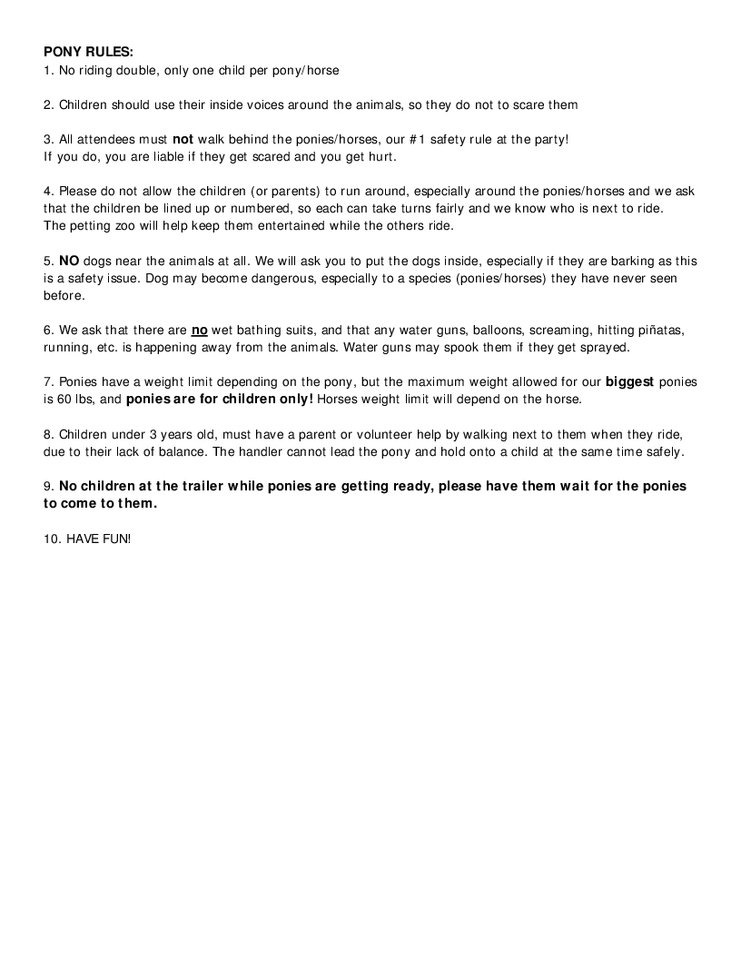 Additionally, if you would like another horse or pony or donkey made available for riding, the cost is an extra $70. We also have a fun paint the pony activity that can be done for just an extra $20!